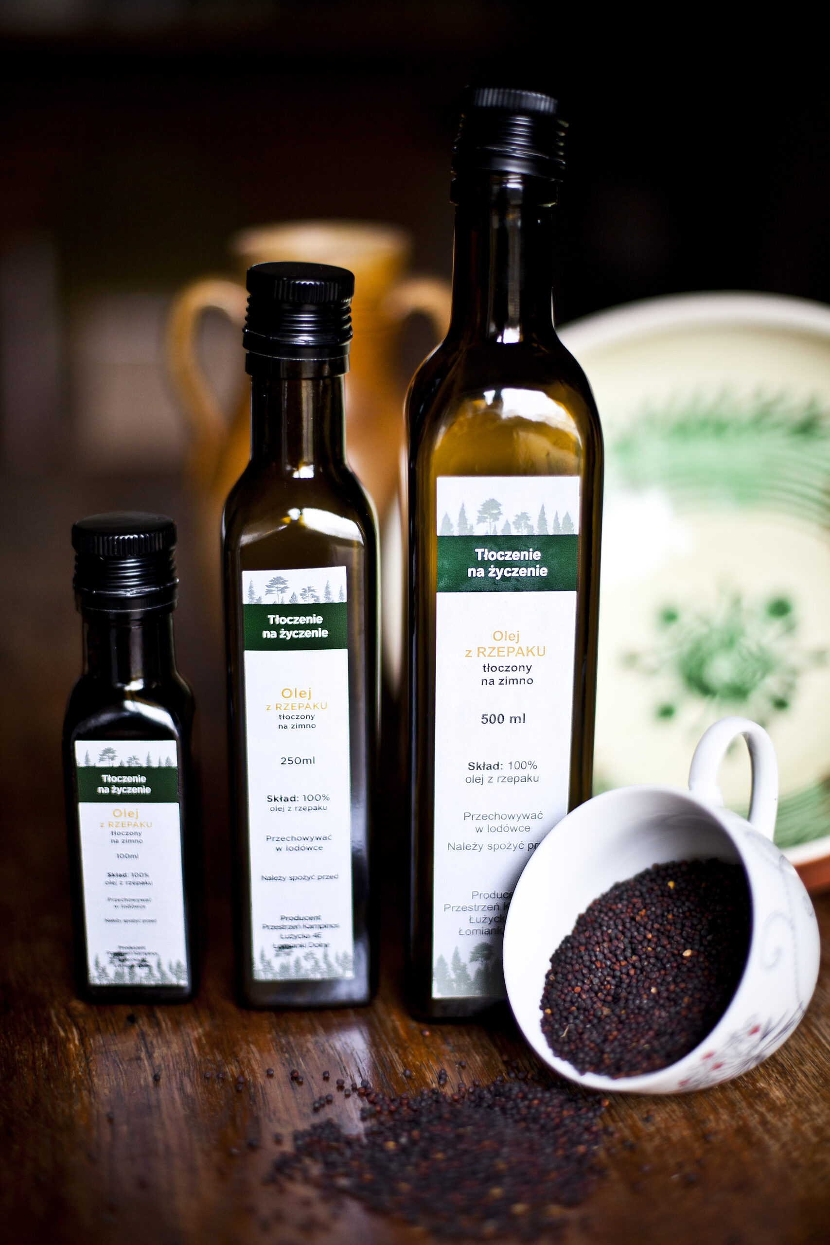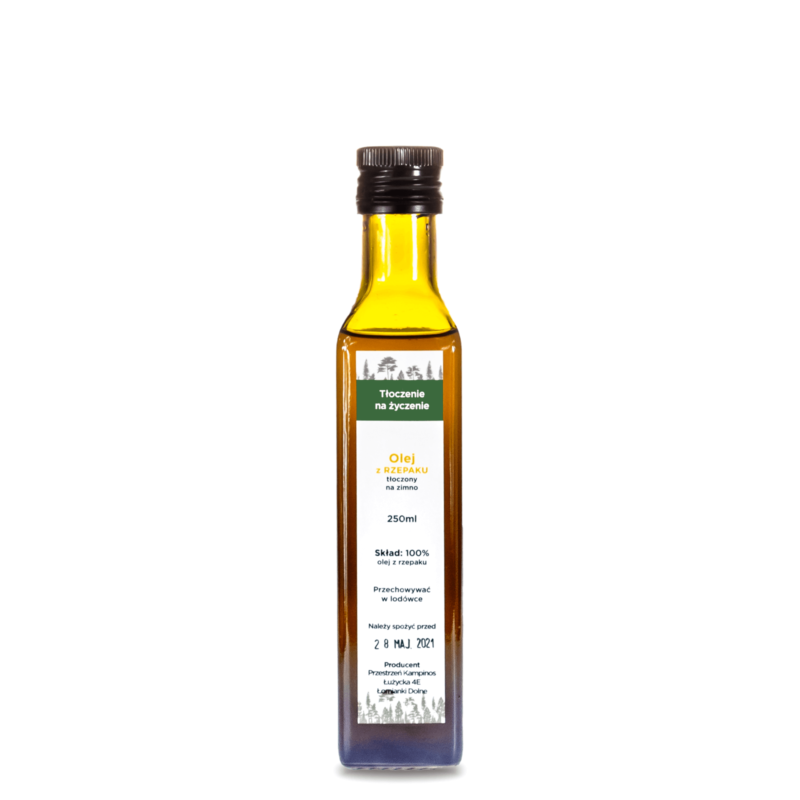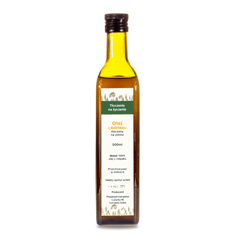 Olej rzepakowy tłoczony na zimno charakteryzuje się intensywnie żółtym kolorem, delikatnym aromatem i lekko ziołowym smakiem.Zalecany do spożycia na zimno, min. do sałatek, surówek np. z kapusty kiszonej, past, sosów, dipów, dressingów, majonezów oraz jako dodatek do kasz i ziemniaków.